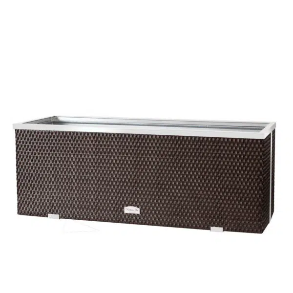 Unser Blumenkübel Rattan Jasmin ist die perfekte Symbiose aus Stil und Funktionalität. Gefertigt aus hochwertigem Technorattan, das nicht nur wetterbeständig, sondern auch optisch ansprechend ist, überzeugt dieser Kübel auf ganzer Linie. Das integrierte Selbstbewässerungssystem erleichtert dir die Pflege deiner Pflanzen, indem es stets für optimale Feuchtigkeitsverhältnisse sorgt. Der robuste Innenraum aus verzinktem Blech garantiert Langlebigkeit und Stabilität. Mit seinem edlen Aluminiumrahmen fügt sich der Kübel harmonisch in jeden Einrichtungsstil ein. Ideal für die Gestaltung von Terrassen, Balkonen oder auch Wohnbereichen, bietet der Pflanzkübel Rattan Jasmin eine dauerhafte Lösung für deine Pflanzenbedürfnisse.
