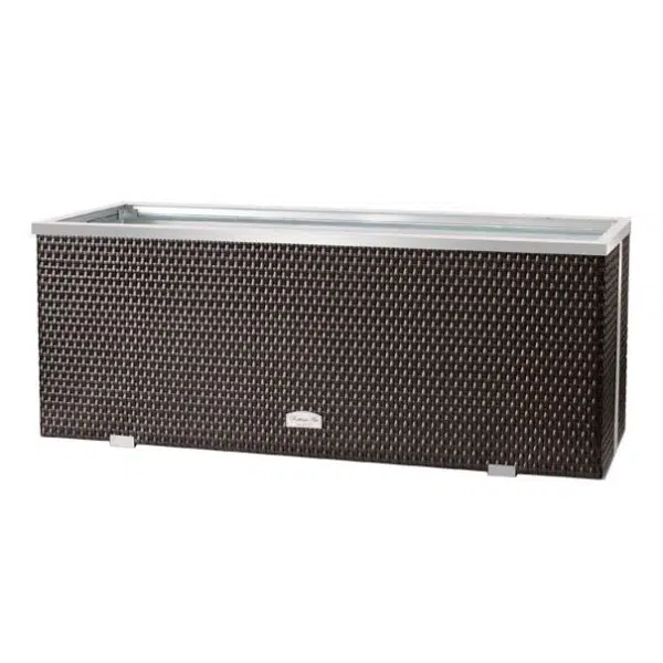 Eleganter Blumenkübel aus Technorattan mit verzinktem Blech für langlebige Nutzung. Perfekt für jede Jahreszeit und direktes Bepflanzen.